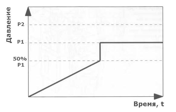 Рис. 1 - Изменение давления на выходе клапана плавного пуска